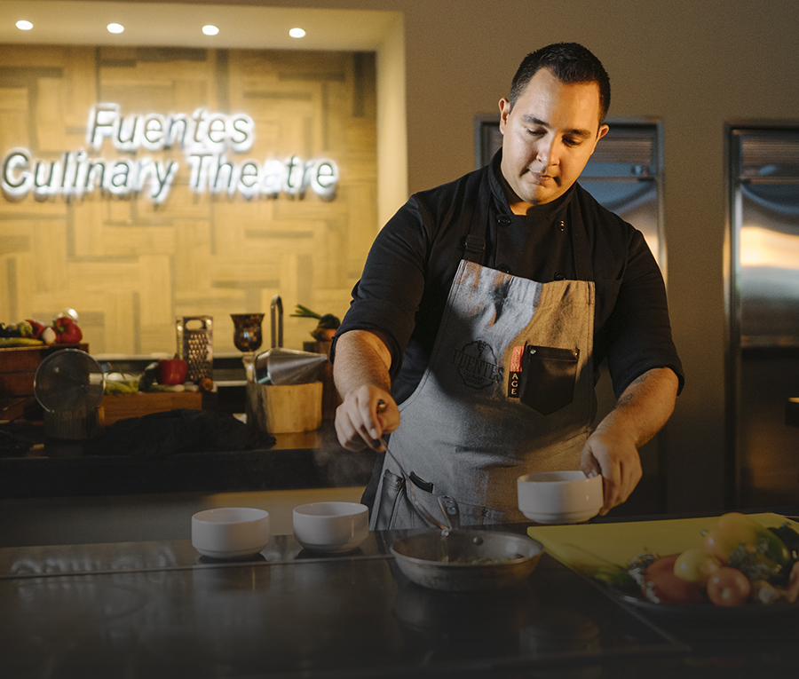 Offering one of the most innovative culinary experiences imaginable, the Fuentes Culinary Theatre features a full cooking show under one of the resort’s beautiful palapas.