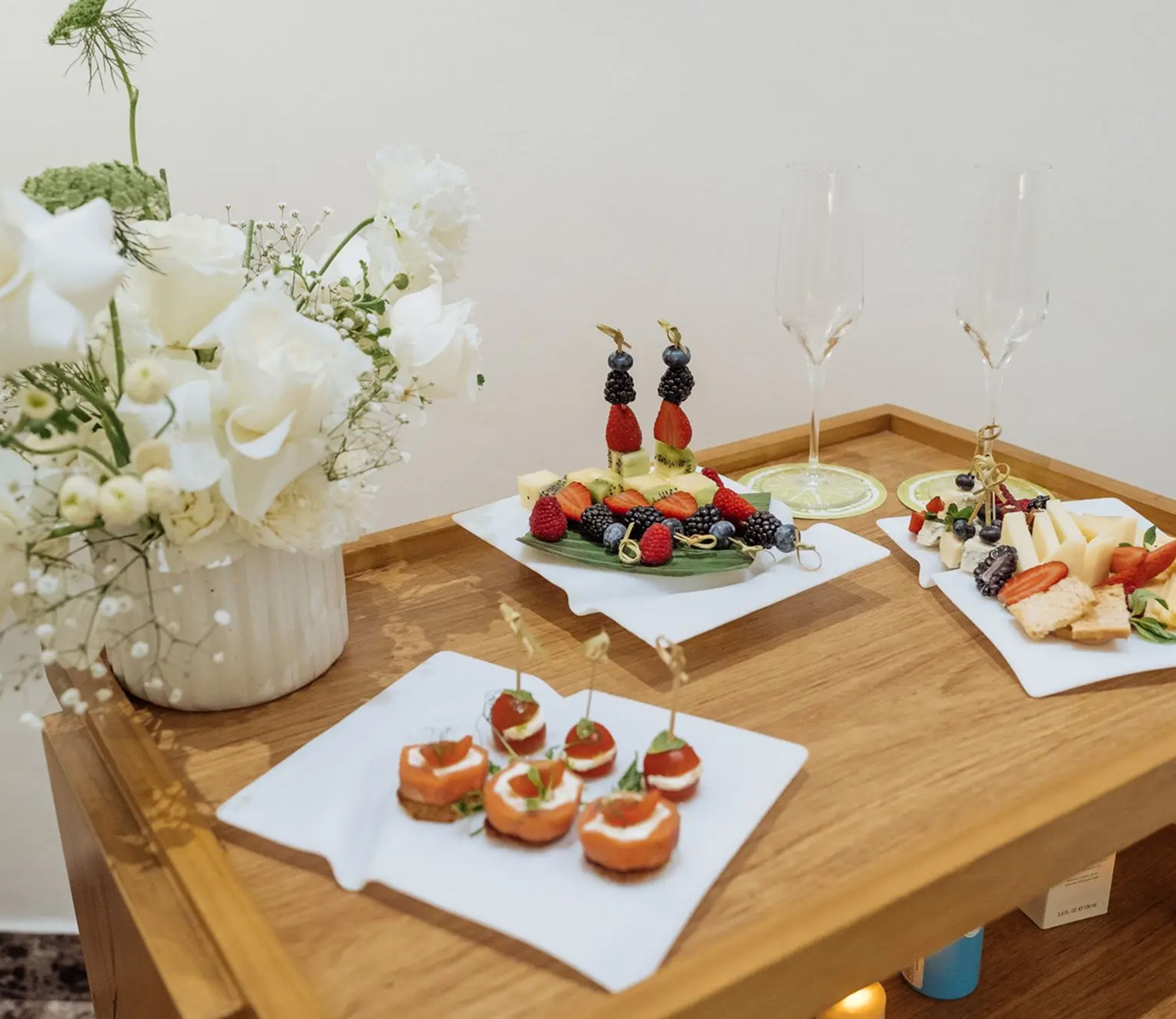 | Complimentary hospitality room for a member of the couple with gourmet bites & drinks on the day of the wedding from 12 pm – 4 pm | X | X | X | X |